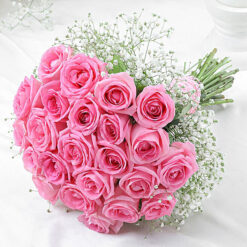 - What’s Included – 20 Pink Roses, White Gypsophila fillers, Tied with Pink Raffia