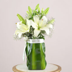 - What’s Included – 1 Lilys, fillers: Green murraya leaf, white gypsophila, Off white colour non woven wrapping paper, Tied with white raffia knot, "])self.__next_f.push([1,"23:{}n24:{"not_deliverable_link_msg":"","not_deliverable_msg":"","occasion_cutoff_time":"","occasion_date":"","occasion_day":"","occasion_link_url":"","occasion_month":""}n25:{"maxFileSize":0,"maxTextLength":0,"minFileSize":0,"noOfImgs":0,"personalizedImgs":false,"personalizedProduct":false,"personalizedText":false,"uploadInfo":null}n26:{"personalizedOptions":null,"personalizedProduct":false}n28:T478,"])self.__next_f.push([1,"Unveil a gift rich in symbolism for your cherished loved one. The solitary white Asiatic lily symbolises purity and new beginnings, surrounded by the lush green murraya leaves and delicate white gypsophila, representing everlasting love. Encased in black and off-white premium papers, this bouquet transcends aesthetics. Beyond its visual appeal, each element carries profound meaning, making this bouquet an eloquent expression of your love and enchanting wishes.Product Details
