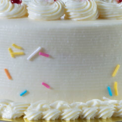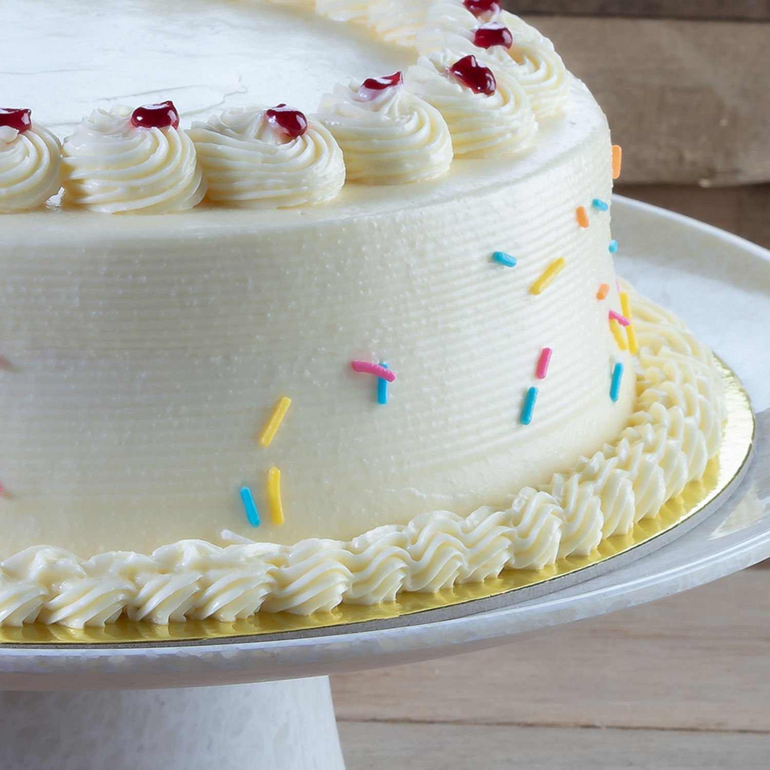 What defines this vanilla cake is its light vanilla flavour with a clean, classic taste. Each layer is consistent — soft sponge, cream filling, and a finish that looks as good as it tastes.